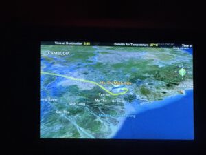 Zwei Stunden vor Abflug bin ich am Flughafen und treffe meine Mitreisenden Volker und Jan. Wir kennen uns schon von einigen wilden Touren quer durch Russland und wollen gemeinsam Südostasien erkunden. Die Flüge verlaufen reibungslos so dass wir nach 12 Stunden Flugzeit in Saigon / Hochimin-Stadt ankommen. Bis jetzt alles erträglich. Bereits über dem Schwarzen Meer hatten wir völlige Dunkelheit, so dass ich die Entscheidung nicht bereue, einen Platz in der Mitte der riesigen Boing gewählt zu haben. Morgens kurz vor 6 kommen wir nach 12 Stunden Flugzeit von Frankfurt an. 30 grad Temperatur unterschied sind nach dieser halben Nacht (zu Hause ist es Mitternacht) zwar lästig aber angenehm.