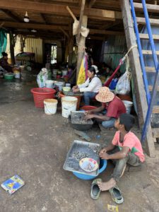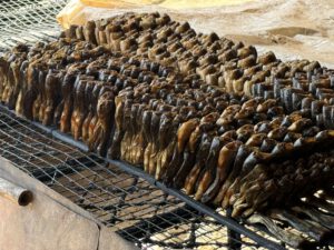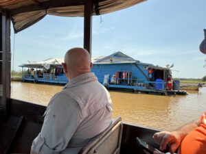 Wir fahren raus. Na, ja: Massentourismus ist es nicht aber ohne Touristen stehen einige Orte anders aus. Ein Nebenfluss des Mekong bildet hier in der Ebene einen großen See, den Tonle Sap. Wir tauchen ein in die Welt der Fischer. Kompong Khleang ist, durch die höhe seiner Stelzenhäuser eines der beeindrucktesten seiner Art. Diese Hauser wurden wegen des Hochwassers so gebaut. Die Tide beträgt bis zu 10 m. Wir schlendern durch den Ort und sehen den Fischern beim Fang mit ihren kleinen Netzen und den Frauen beim säubern der kleinen Fische und der Krabben zu. Danach fahren wir mit dem Boot zu einem entlegenen schwimmenden Dorf wo sich vietnamesische Siedler niedergelassen haben. Zurück in Kompong Khleang gibt es ein Picknick – Mittagessen.